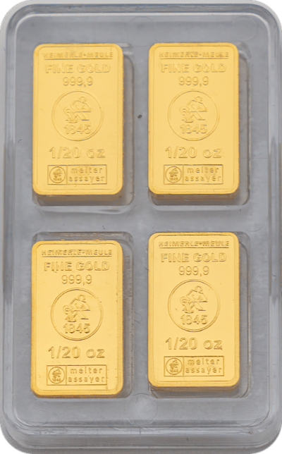 - Stückelung: 20 x 1/20 Unze Goldbarren