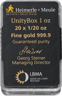 20 x 1/20 Unze Goldbarren Heimerle und Meule Unity Box
