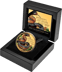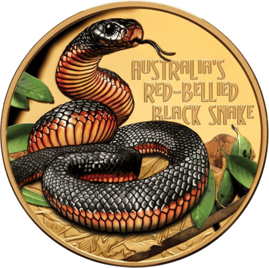 Keine Sorge: Nur lebend kann das faszinierende Schlangentier tödlich sein, und es lebt ausschließlich im östlichen Australien. Seiner Schönheit müssen Sie sich jedoch nicht entziehen: Verausgabt vom südpazifischen Inselstaat Tuvalu, prägt die australische Perth Mint seit 2006 in ihrer beliebten Münzserie Deadly & Dangerous besonders berüchtigte Spezies ihrer Tierwelt auf Silbermünzen – in der höchsten Qualität der Polierten Platte und aufwendig coloriert. Die 17. Ausgabe von 2022 widmet sich nun der rotbäuchigen Schwarzotter und wird von der Inselgruppe Niue als streng limitierte Sonderedition in Gold und mit einem teilgefärbten Motiv herausgegeben.