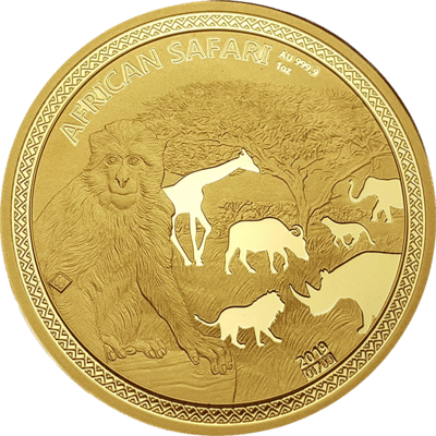 1 Unze Gold African Safari Affe 2019 PP (Auflage: 99 | Polierte Platte | Nr. 99)
