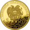 Auch die Vorderseite dieser Goldmünze zeigt, wie alle Arche Noah Münzen, die Arche, die Noah gehörte. Laut der Bibel baute Noah die Arche, da er den Auftrag von Gott erhielt. Gott wollte, dass Noah, seine Familie und die Tiere nicht durch eine Sintflut gefährdet wurden. Die von Gott auferlegte Sintflut hatte den Zweck, die Menschen zu bestrafen, da diese nicht friedlich lebten, sondern stattdessen sündigten. Im Vordergrund ist groß eine Friedenstaube mit einem Ölzweig im Schnabel zu sehen, da diese Noah mit einem Ölzweig überraschte und damit das Ende der Flut verkündete. Danach strandete die Arche am Berg Ararat. Dieser wird im Hintergrund angedeutet.
