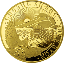 Die Gold Arche Noah Münze zeigt ein kunstvolles Motiv der Arche Noah, das von einer Friedenstaube mit einem Ölzweig im Schnabel gekrönt wird. Dieses symbolträchtige Bild steht für Hoffnung und den Neuanfang, was diese Münze nicht nur ästhetisch ansprechend, sondern auch emotional bedeutsam macht.