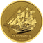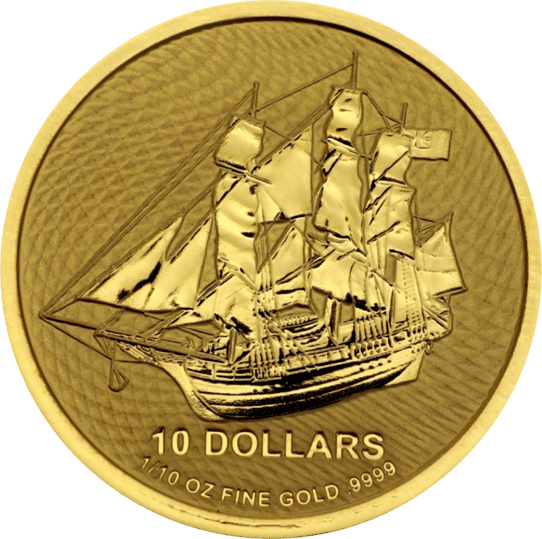 Das Motiv auf der Vorderseite der Goldunze stellt ein weltweit bekanntest Dreimaster-Segelschiff dar. Der Name des Schiffes ist Bounty, mit welcher der Kapitän Bligh und seine Crew im Jahr 1789 auf den Cookinseln ankam. Die Schiffsfahrt gewann ihre Bekanntheit durch die Meuterei auf dem Schiff. Diese Meuterei wurde auch mehrfach verfilmt. Auf der Goldunze ist unter dem Schiff der Nennwert aufgeprägt. Ebenso findet man den Feingoldgehalt “1 OZ FINE GOLD .9999”. Das Handelsschiff war etwa 39 Meter lang und 7 m breit. Es bat Platz für eine Mannschaft von ca. 44 Seefahrern. Der Hintergrund auf der Motivseite ist in einem aufwändigen Wellenmusster geprägt, was einen sehr guten Fälschungsschutz bietet,da ein solches Muster zu prägen nicht einfach ist. Dieses Wellenmusster verleiht dem Motiv einen zusätzlichen maritimen Charakter.