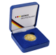 Jede Münze wird in einem hochwertigen Etui geliefert, das nicht nur optimalen Schutz bietet, sondern auch die würdevolle Präsentation dieses Kunstwerks ermöglicht. Die Wertseite zeigt den majestätischen Bundesadler, umgeben von sichelförmig angeordneten Sternen - ein Symbol für die Einheit Europas und die Stärke Deutschlands.