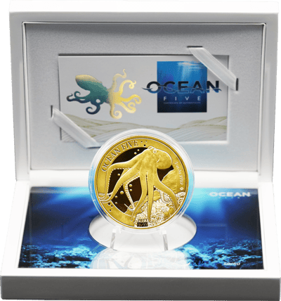 Exklusivität par excellence: 5 Unze Gold Ocean Five Oktopus 2023 PP