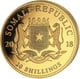 Die 1/50 Unze Gold Somalia Elefant 2018 PP ist Teil der beliebten African Wildlife Serie. Das jährlich wechselnde Motiv zeigt den majestätischen afrikanischen Elefanten in seiner natürlichen Umgebung. Die Detailtreue der Prägung lässt die Münze fast lebendig wirken und macht sie zu einem begehrten Sammlerstück. Auf der Rückseite der Münze ist das somalische Wappen abgebildet, was ihre Herkunft unterstreicht.