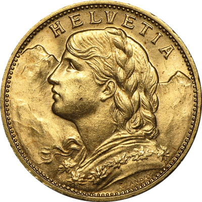 Den Ursprung findet diese besondere Münze in den Schweizer Brieftaschen als einst reguläres Zahlungsmittel. Damals trug sie den Namen Helvetia Münze. Mittlerweile hat sich allerdings der Name Vreneli weit über die Landesgrenzen etabliert. Da es sich um eine Umlaufmünze mit sehr hoher Auflage handelt, weist die Münze entsprechende Gebrauchsspuren auf.