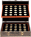 Zum Lieferumfang des Produktbündels gehört auch eine edle Schatztruhe aus Holz, die mit Tableaus ausgelegt ist. Diese Truhe bietet nicht nur einen sicheren Aufbewahrungsort für Ihre Goldmünzen, sondern verleiht Ihrer Sammlung auch eine zusätzliche Note von Eleganz und Stil.