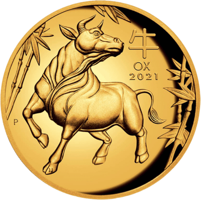 1 Unze Gold Lunar III Ochse 2021 PP HR (Auflage: 188 | Polierte Platte | High Relief)