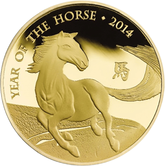 „The Royal Mint“ startete im Jahr 2014 die erste Lunar UK Goldmünzen-Serie aus Großbritannien, welche die beliebten traditionsreichen Motive des chinesischen Tierkreiskalenders abbildet. Der Jahrgang 2014 zeigt das „Jahr des Pferdes“ und weist einen Nennwert von 100 britischen Pfund auf. Der Feingehalt der britischen Lunar Goldmünzen beträgt 999,9/1000.