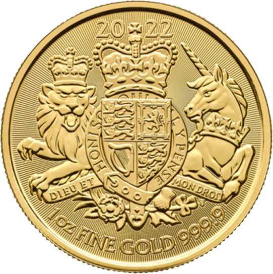 Auf der Motivseite ist das berühmte Wappen Großbritanniens zu sehen. Links und rechts des klassischen Wappens finden sich der Löwe Englands und das Einhorn. In der Mitte des Wappens sind die jeweiligen Wappen der Landesteile England, Schottland und Nordirlands zu finden. Oberhalb wird es von der St. Edwards Krone gekrönt. Die Inschrift „Honi soit qui mal y pense“ steht dabei für „Beschämt sei, wer schlecht darüber denkt“. Das Prägejahr ist auf 2022 datiert. Unterhalb des Wappens finden sich die Schriftzüge „1oz“, „FINE GOLD“ und „999,9“.