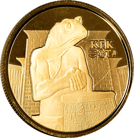 Kek, oft als Froschkopf-Mann dargestellt, repräsentiert in der ägyptischen Mythologie das Chaos und die Dunkelheit der Urwässer. Als mächtige Gottheit mit der Fähigkeit zu erschaffen und zu zerstören, spielte Kek eine zentrale Rolle in der Schöpfung der Welt. Diese Münze bringt Ihnen ein Stück dieser faszinierenden Geschichte nach Hause. Die Gestaltung der Münze zeigt ein hohes Maß an Detailgenauigkeit und Handwerkskunst. Die Darstellung von Kek ist nicht nur ein Beweis für die meisterhafte Prägung, sondern auch ein Symbol für Schutz vor Bösem und Chaos, wie es in der alten ägyptischen Gesellschaft verehrt wurde.