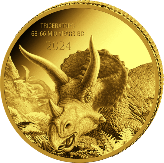 0,5g Gold Prehistoric Life Triceratops 2024 PP (Auflage: 2.000 | Polierte Platte)