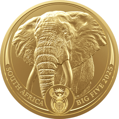 Majestätischer Elefant auf feinstem Gold - Die Big Five Goldmünze 2025