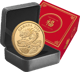 Die Münze wird in einem eleganten Etui geliefert, das nicht nur optimalen Schutz bietet, sondern auch die Präsentation dieses Kunstwerks würdig unterstreicht. Mit einem Feingewicht von 1,56 Gramm reinstem Gold (999,9/1.000) vereint sie materiellen und ideellen Wert auf einzigartige Weise.