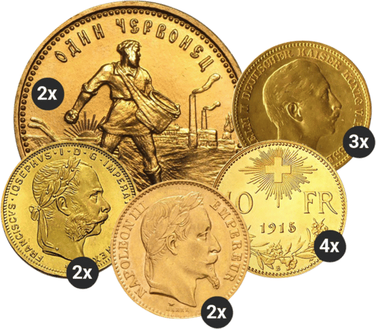 Das Paket beinhaltet die beliebtesten Produkte und bietet Ihnen eine Gute Mischung aus Sicherheit und Krisenschutz. Es umfasst die wichtigsten historischen Münzen und beinhaltet eine schöne Mischung. Daher ist das Paket für Einsteiger sehr gut geeignet aber auch wenn Sie Ihren Goldbestand auffüllen wollen haben Sie mit diesem Paket eine gute Grundlage für Ihr Portfolio.