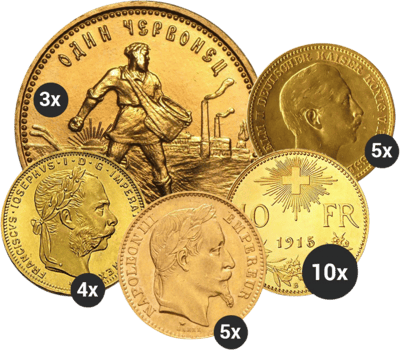 Das Paket beinhaltet die beliebtesten Produkte und bietet Ihnen eine Gute Mischung aus Sicherheit und Krisenschutz. Es umfasst die wichtigsten historischen Münzen und beinhaltet eine schöne Mischung. Daher ist das Paket für Einsteiger sehr gut geeignet aber auch wenn Sie Ihren Goldbestand auffüllen wollen haben Sie mit diesem Paket eine gute Grundlage für Ihr Portfolio.