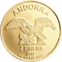 Auf der Vorderseite der 1 Gramm Andorra Eagle ist ein Adler abgebildet, der mit offenen Flügeln über die Berge Andorras gleitet. Darüber ist der Schriftzug -ANDORRA- abgebildet, darunter die Kurswährung und das Herstellungsland. Die Währung ist in der Währungsbezeichnung des Fürstentums, der Andorrischen Diner, angegeben.