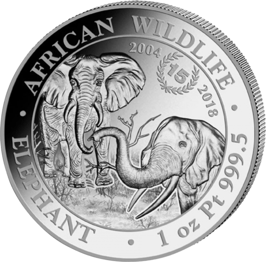 1 Unze Platin Somalia Elefant 2004-2018 (Jubiläumsausgabe: 15 Jahre | Auflage: 1.500)