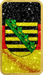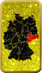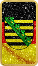 Der 1 Unze Silberbarren Sachsen wurde von Heimerle & Meule gefertigt und in Deutschland nachträglich kunstvoll veredelt. Die Vorderseite des Barrens zeigt die Deutschlandfahne, verziert mit verschiedenem Diamantpulver in Schwarz, Rot und Gold, sowie das mittig platzierte Wappen von Sachsen. Die Rückseite präsentiert eine Deutschlandkarte, auf der das Bundesland Sachsen rot hervorgehoben ist. Auch hier kommen die glitzernden Diamantpulver in Schwarz, Rot und Gold eindrucksvoll zur Geltung.