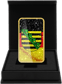 Das Design des Barrens ist ein echter Blickfang. Die glitzernde Textur und die abwechselnden Streifen in Schwarz und metallischem Goldton verleihen dem Barren ein luxuriöses Aussehen. Ein diagonales Band mit grünen Ornamenten, die an stilisierte Pflanzen oder Blumen erinnern, durchzieht den Barren und wird durch einen schmalen Streifen in metallischem Rotton akzentuiert. Die hochglänzende Oberfläche und die detailreiche Gestaltung machen diesen Barren zu einem wahren Kunstwerk.