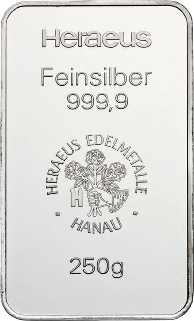 250 g Silberbarren von Heraeus