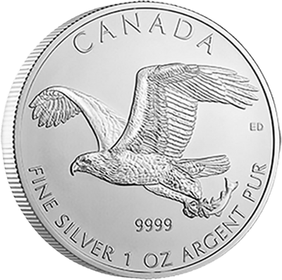 Auf der Aversseite der Silbermünze ist das Konterfei Königin Elizabeth II. zu sehen. Zudem findet man auf dieser Seite eine Inschrift „Elizabeth II“, das Prägejahr 2014 und den Nennwert der Münze (5CAD) abgebildet. Die kanadische Illustratorin Emily Damstra entwarf das Münzdesign und verzweigte sich mit dem Motiv des Raubvogels, welcher im Flug dargestellt wird und einen Fisch in seinen Krallen hält. Über dem Motiv befindet sich die Inschrift „Canada“, und darunter findet man die Angaben zur Feinheit und zum Feingewicht der Münze aufgeprägt. Rechts über dem Flügel sind die Initialen von Emily Damstra („ED“) zu erkennen.