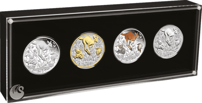 4 x 1 Unze Silber 125 Jahre Perth Mint 2024 (Auflage: 2.500 | coloriert | teilvergoldet | Polierte Platte)