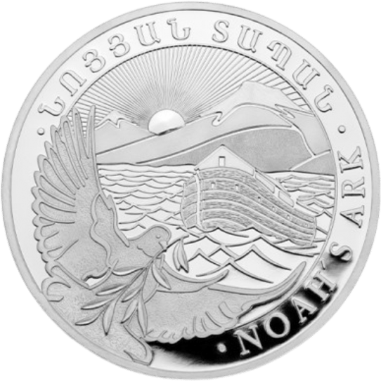 Der Bezug zu Armenien kommt dabei nicht von ungefähr. Denn der Berg Ararat war es, der nach der am Ende der Sintflut gesichtet wurde. Immer wieder finden sich Indizien zum Beispiel in Form von fossilen Steinbögen in der Umgebung des Berges, die die reale Existenz begründen sollen. Zu Ehren der biblischen Geschichte finden sich die wichtigsten, inhaltlichen Bestandteile auf der 5 Unze Silbermünze wieder. Zudem ist die Silbermünze in den Stückelungen ¼ Unze Silber Arche Noah, ½ Unze, 1 Unze, 10 Unze, 1kg oder 5kg erhältlich.