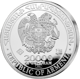 Auf der Rückseite prangt das kunstvolle Staatswappen Armeniens. Ein Adler und ein Löwe flankieren einen vierteiligen Wappenschild, der die reiche Geschichte des Landes widerspiegelt. Die Umschrift "REPUBLIC OF ARMENIA" in lateinischen und armenischen Buchstaben unterstreicht den offiziellen Charakter dieser Anlagemünze. Besonders beeindruckend: Die feine Ausarbeitung der Federn und die präzise Darstellung der heraldischen Details.