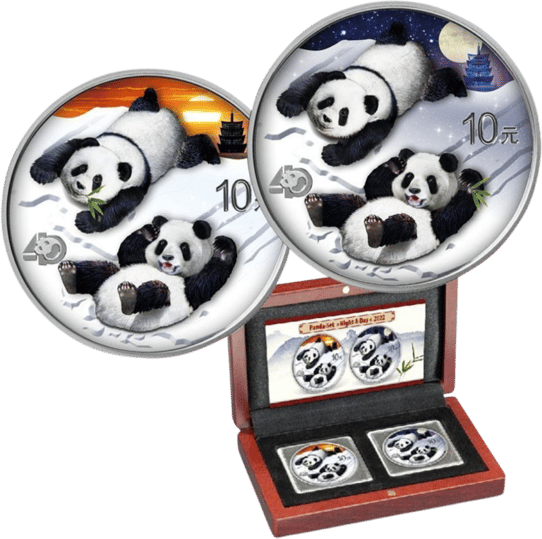 In den letzten Jahren hat sich die Panda-Münzreihe zu einem echten Überraschungserfolg entwickelt. Die vorliegenden Münzen werden in Form eines Sets angeboten. Darin ist das diesjährige Motiv der zwei rutschenden Pandas einmal am Tag und einmal in der Nacht zu sehen. Zudem handelt es sich bei dem Münzmotiv um eine Jubiläumsausgabe, die auf nur 888 Exemplare limitiert ist. Anleger, die Geschmack an dieser Münzserie gefunden haben, möchten vielleicht auch die ebenfalls colorierte 30g Silber China Panda 2022 Münze kennenlernen.