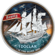 Die Münze besticht durch ihre detailreiche Gestaltung und hohe Qualität. Das Motiv zeigt das berühmte Segelschiff "Bounty" auf hoher See, umgeben von einem stürmischen Himmel, der durch Blitze erleuchtet wird. Das Schiff selbst schimmert in reinem Silber und hebt sich deutlich von dem colorierten Hintergrund ab. Auf der linken Seite der Münze ist eine farbige Banderole abgebildet, die den Namen "Bounty" trägt. Unterhalb des Schiffs sind der Nennwert von 1 Dollar sowie die Feinheit und das Gewicht der Münze vermerkt.