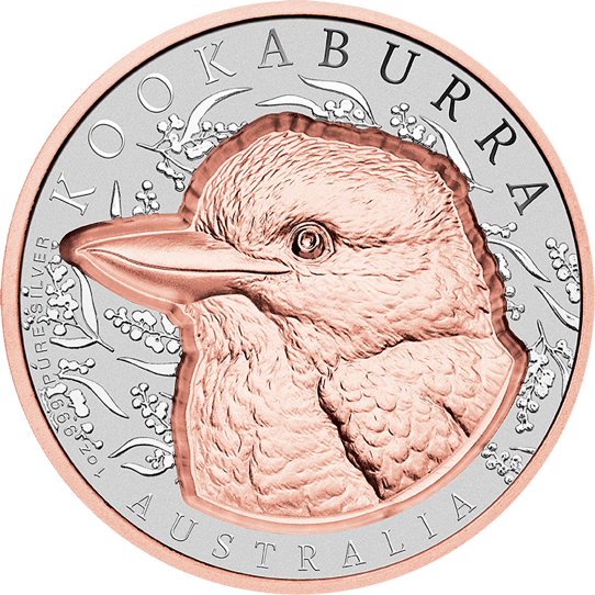 Die Vorderseite zeigt den majestätischen Kookaburra, umgeben von filigranen botanischen Elementen. Die Rückseite präsentiert das roségold-veredelte Porträt von König Charles III. Beide Seiten demonstrieren eindrucksvoll die außergewöhnliche Prägequalität dieser Münze.