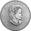 Auf der linken und rechten Seite ist der Feingehalt von 9999 zu sehen. Rechts vom Stiehl ist ein Kopierschutz in Form eines Miniatur-Ahornblatts vorhanden. Als Schriftzüge kommen die Münzdetails „FINE SILVER“, „1 OZ“ und „ARGENT PUR“ verewigt.