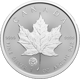 Das Design der Münze ist ebenso beeindruckend wie ihre Qualität. Das charakteristische Ahornblatt, das Symbol Kanadas, ist im Zentrum der Münze detailliert geprägt, mit sichtbaren Blattadern und Strukturen, die die Handwerkskunst der Royal Canadian Mint unterstreichen. Der Hintergrund der Münze ist kunstvoll mit feinen horizontalen und vertikalen Linien gestaltet, die den Blick auf das zentrale Motiv lenken und eine optische Tiefe erzeugen.