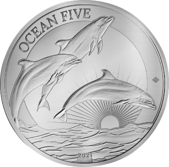 1kg Silber Ocean Five Delfin 2021 (Auflage: 100 | Polierte Platte | Zertifikat Nr. 100)