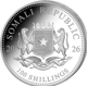 Die Rückseite der Münze zeigt stolz das somalische Staatswappen – ein Symbol für die offizielle Ausgabe und staatliche Garantie. Der Nennwert von 100 Shilling unterstreicht den Status als gesetzliches Zahlungsmittel, was zusätzliche Sicherheit bietet.