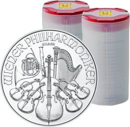 Mit diesem 40er-Set Wiener Philharmoniker komponieren Sie Ihre eigene Vermögenssymphonie. Jede Unze repräsentiert einen Baustein für generationenübergreifenden Wohlstand. Die transparenten Münztuben mit gelb-roten Sicherheitsetiketten garantieren Originalität und erleichtern die Handhabung Ihrer Investition erheblich.