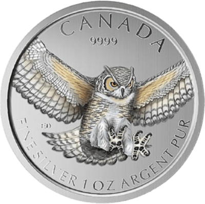 Seit 2014 wird die Birds of Prey Serie (Greifvögel) von der Royal Canadian Mint ausgegeben. Die colorierte Variante der Serie ist je Motiv auf 5000 Münzenbegrenzt. Die Serie gilt als Nachfolgerserie der sehr populären “Wildlife Serie”, welche sich auch mit der Tierwelt in Kanada beschäftigte. Die Serie wurde auf eine Dauer von zwei Jahren mit je zwei Tiermotiven pro Jahr ausgelegt. Als viertes von vier Motiven der Birds of Prey Serie ist die Eule (Virginia Uhu) auserwählt worden. Die Serie “Birds of Prey” endet also mit dem Uhu als insgesamt viertes Motiven. Die Feinheit ist mit 999,9 beziffert. In der Prägequalität “BU” und einer limitierten Auflage der “Proof”-Ausgabe für Sammler herausgegeben, deren maximale Auflage sich auf nur 20.000 Stück beläuft. Der Nennwert der Silbermünze liegt bei 5 CAD (kanadische Dollar).
