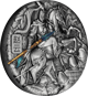 Diese Münze ist dem chinesischen Krieger Zhao-Yun gewidmet. Er diente der kaiserlichen Armee während der Han-Dynastie und unter dem Kriegsherren Liu Bei während der Periode der drei Reiche. Zhao Yun ist eine Leitfigur in der chinesischen Geschichte, besonders berühmt ist die Geschichte von der Schlacht bei Changban im Jahr 208. Als Liu Bei und seine Familie durch den rivalisierenden Kriegsherrn Cao Cao angegriffen wurden, riskierte Zhao-Yun alles, um den kleinen Sohn und die Frau seines Herrn zu retten. Für seine überaus große Tapferkeit wurde er mit dem Rang des Generals belohnt. Das Motiv zeigt den Krieger auf seinem Pferd in einem Gefecht während der Schlacht von Changban. Dadurch dass das Motiv in High Relief geprägt wurde wirkt die Münze authentischer und mystischer.