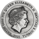 - Rückseite: Die Queen und der Nennwert von 5$, der Jahrgang 2021 und die Unzen-Größe “5OZ”