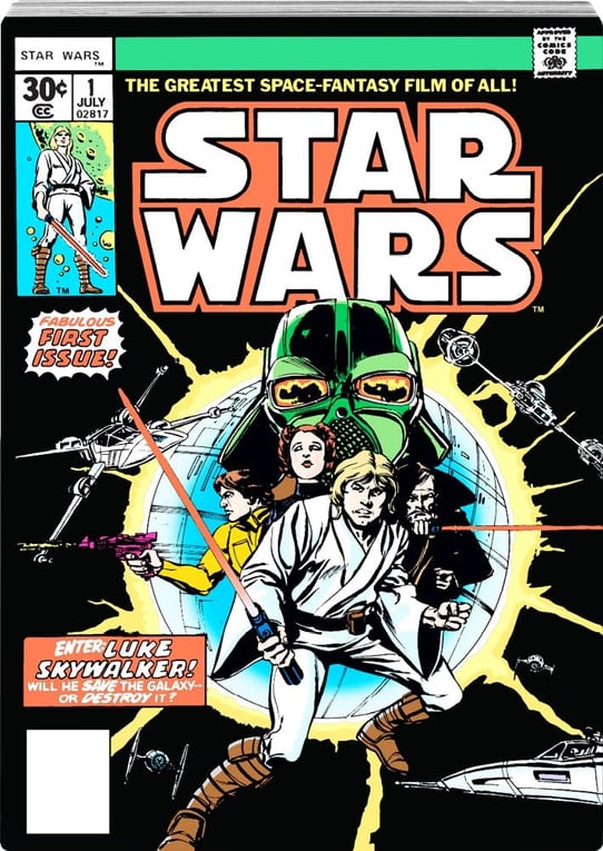 - Motiv: Farbige und detailgetreue Nachbildung des legendären Star Wars #1 Comicheftes