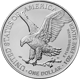 Auf der Rückseite präsentiert sich der majestätische amerikanische Weißkopfseeadler, der ein Symbol für Freiheit und Stärke darstellt. Der Adler trägt einen Eichenzweig in seinen Klauen und wird von den Worten "UNITED STATES OF AMERICA", "ONE DOLLAR - 1OZ. FINE SILVER" umrahmt.