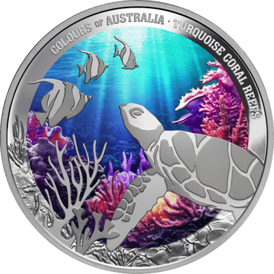 1 Unze Silber Colours of Australia - Turquoise Coral Reefs 2025 (Auflage: 1.000 | Polierte Platte)