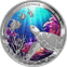 Das kunstvoll gestaltete Motiv der Silbermünzen zeigt ein farbenfrohes Korallenriff in spektakulären Violett- und Rottönen, das sich eindrucksvoll vom türkisblauen Ozean abhebt. Im Vordergrund wurde eine majestätische Meeresschildkröte in feiner Gravur dargestellt, die von einer Gruppe elegant schwimmender Fische begleitet wird. Die streng limitierte Auflage von nur 1.000 Exemplaren macht diese Münze zu einer begehrten Rarität für anspruchsvolle Sammler.