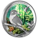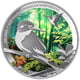 Das Hauptmotiv der 1 Unze schweren Silbermünze zeigt einen majestätischen Kookaburra, der auf einem Ast im üppig grünen Regenwald thront. Im Hintergrund ist ein weiterer Kookaburra im Flug zu sehen. Die brillante Farbapplikation in verschiedenen Grüntönen verleiht dem Motiv eine beeindruckende Lebendigkeit und Tiefe.