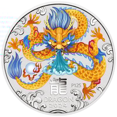 Entdecken Sie die majestätische Schönheit: 1 Unze Silber Lunar III Drache 2024 (coloriert)