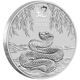 Auf der Vorderseite der Münze prangt eine detaillierte Darstellung einer majestätischen Schlange, die sich anmutig in einer natürlichen Umgebung windet. Das chinesische Symbol für Schlange und der Schriftzug "Snake 2025" ergänzen das kunstvolle Design. Die Rückseite ziert ein elegantes Porträt von King Charles III., umgeben von den Schriftzügen "Charles III", "Australia", "1 oz 9999 Ag" und "1 Dollar".