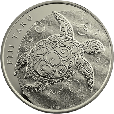 Die 1 Oz Fiji Taku Schildkröte ist eine Anlagemünze, die seit 2010 von der New Zealand Mint geprägt und von der Reserve Bank of Fidschi lizenziert wird. Bis 2018 soll die 1 Oz Silber Taku Schildkröte jährlich herausgegeben werden, die Anzahl der Prägungen ist nicht limitiert, sondern richtet sich nach der Auftragslage. Gefertigt wird die Fiji Taku aus Silber mit einer Reinheit von 99,9 Prozent, das Gewicht von einer Feinunze entspricht 31,1 Gramm. Der Nennwert beträgt zwei Fidschidollar und ist damit unterhalb des Materialwertes. Der tatsächliche Wert von einer Fiji Taku aus Silber richtet sich daher wie bei allen Bullionmünzen nach dem Tagespreis des Edelmetalls. Neben der Fiji Taku 1 Oz gibt es seit 2011 eine zweite Fiji TakuAnlagemünze aus Silber mit einem Gewicht von 5 Feinunzen und einen Nennwert von 10 Fidschidollar.