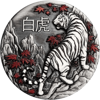 2 Unze Silber Weißer Tiger 2022 AF (Auflage: 888 | Antik Finish)